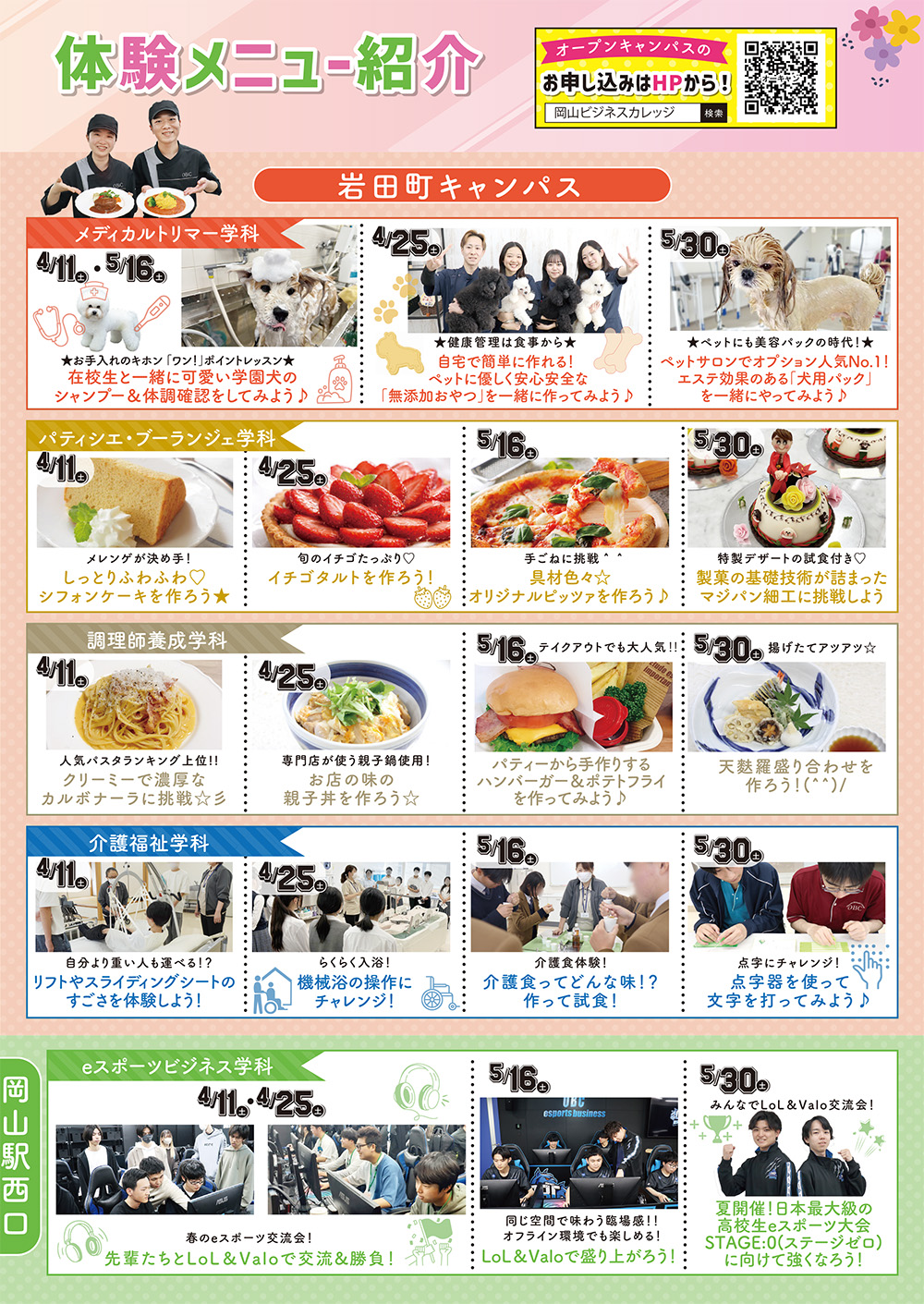 IT、医療事務、ファッション、ブライダル、動物、製菓、調理、介護福祉、イラスト、eスポーツと、多彩な10学科を持つ総合学園のOBC!