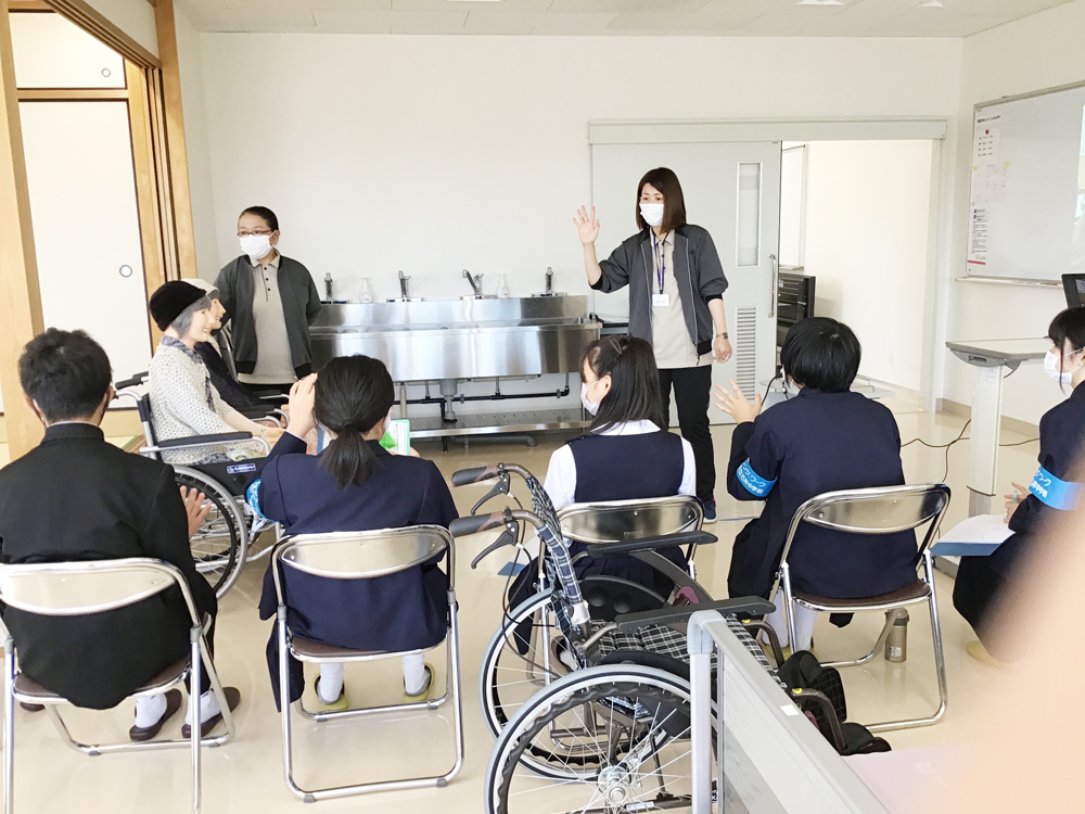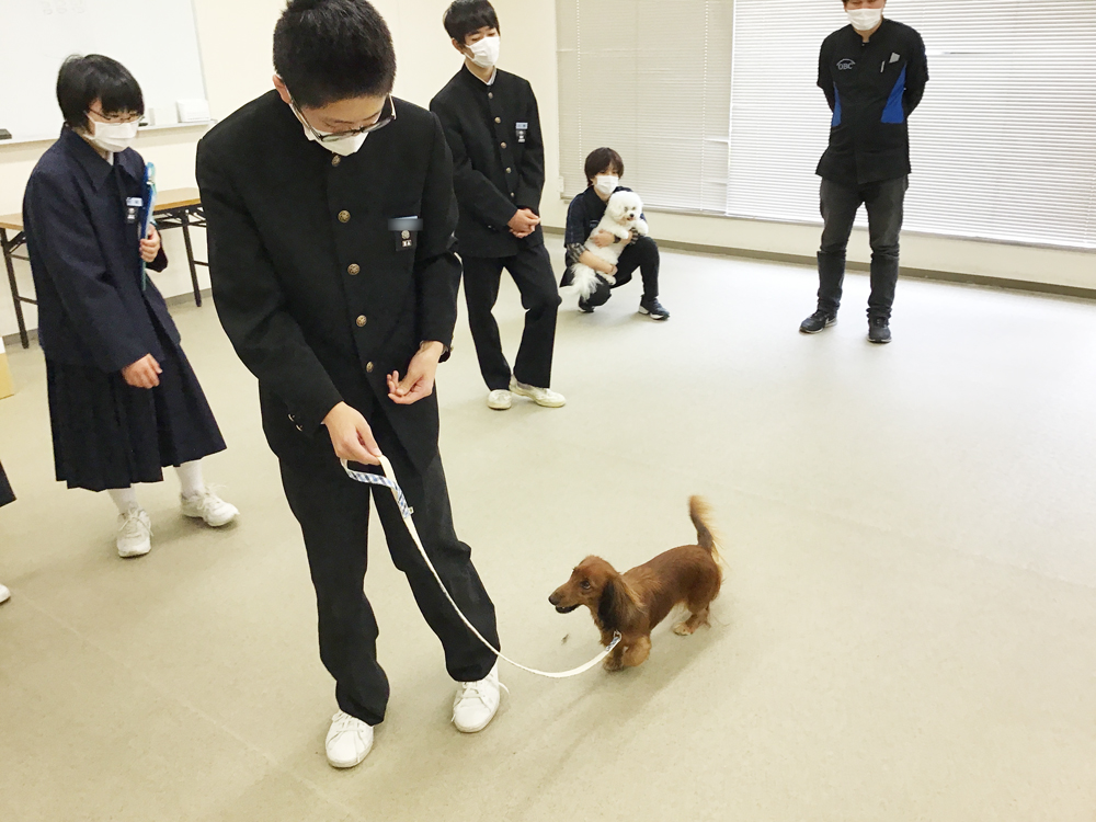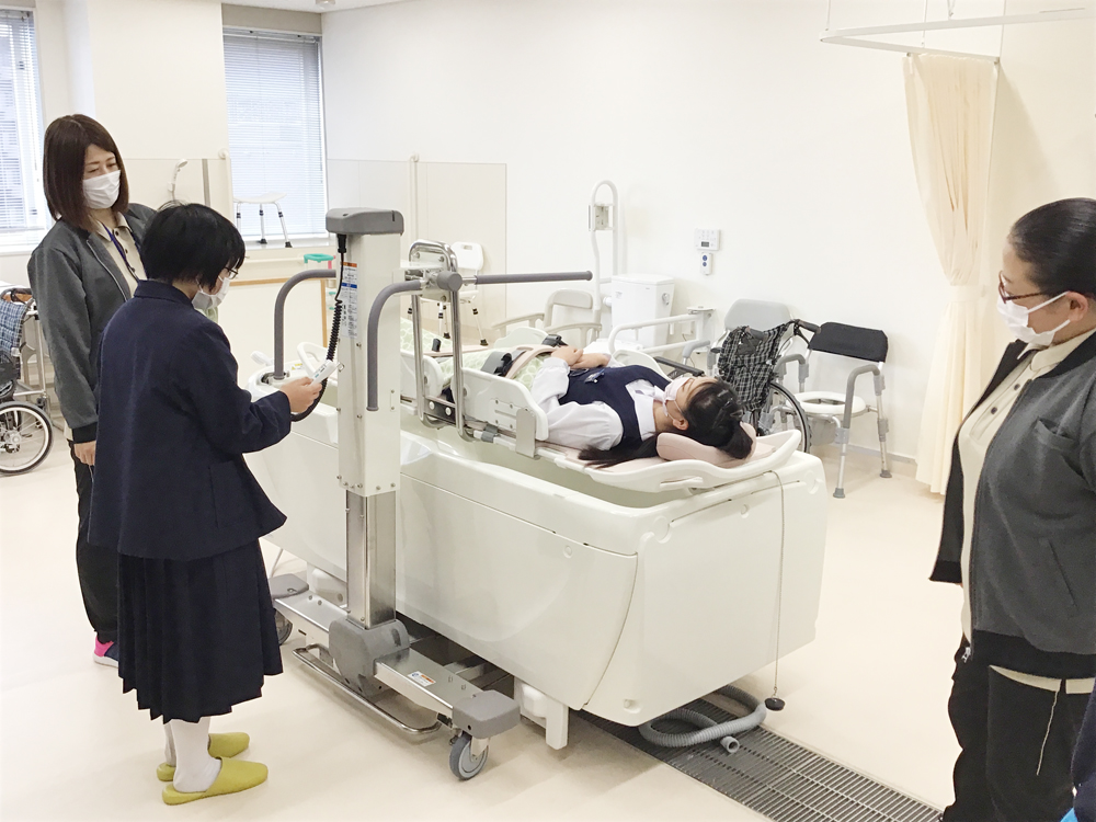 学園犬と触れ合ったり、マジパンを製作したり、機械浴槽を体験したりと楽しんでいただきました。