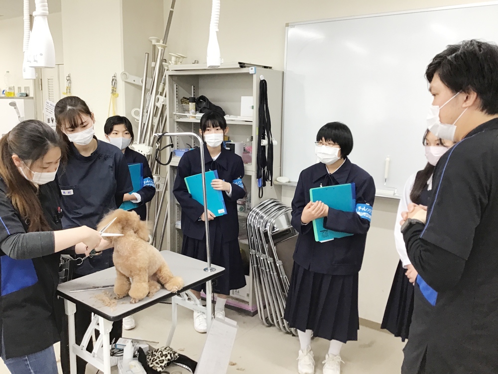 2日目はOBCの岩田町キャンパスで愛犬美容・看護学科、パティシエ学科、和食調理学科、介護福祉学科を見学・体験☆