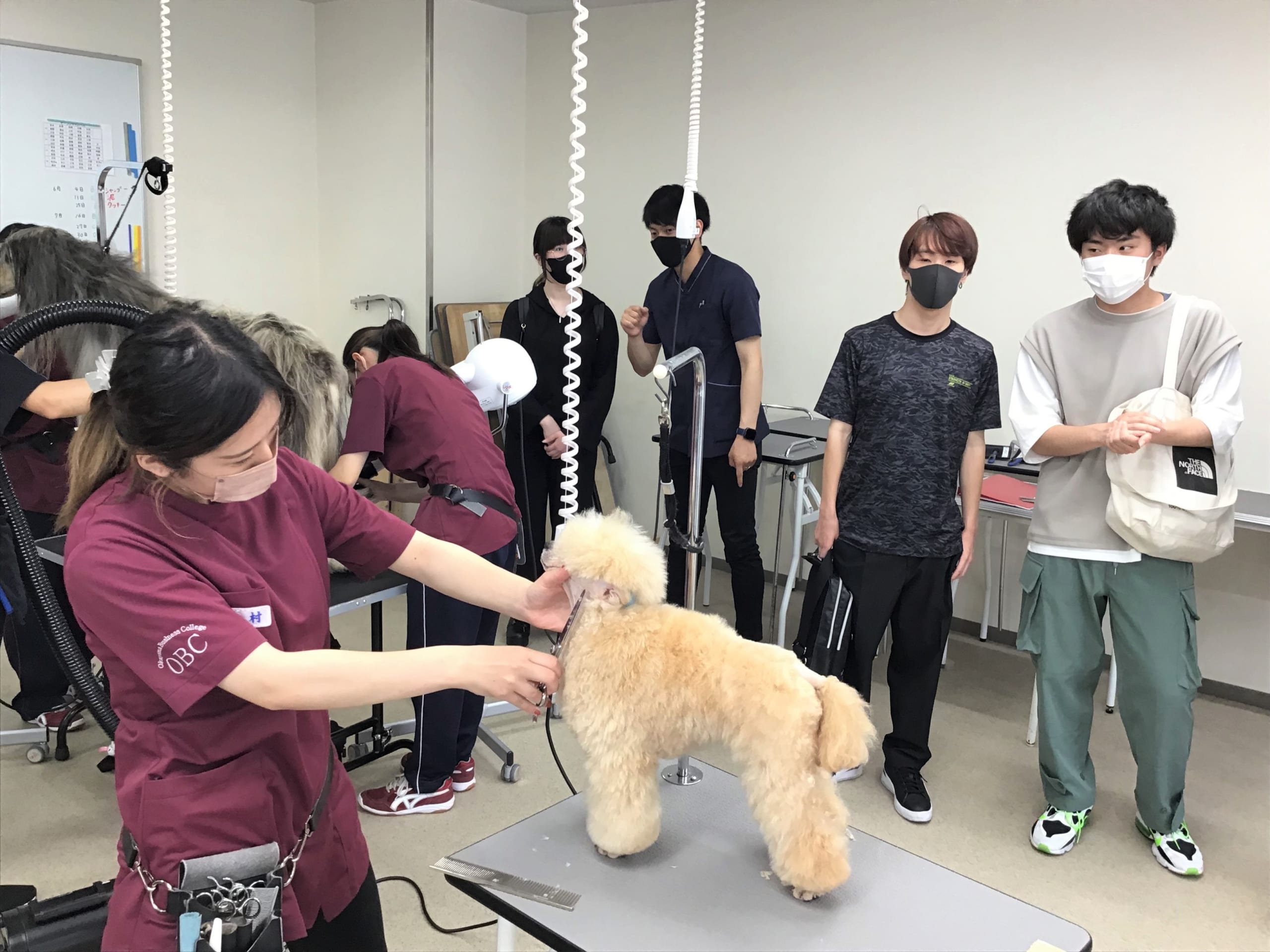 岩田町キャンパスではビジネス・コミュニケーション学科のPOP作成の授業見学、メディカルトリマー学科では学園犬の紹介と実習室の見学、調理師養成学科では調理実習室の見学をしていただきました。