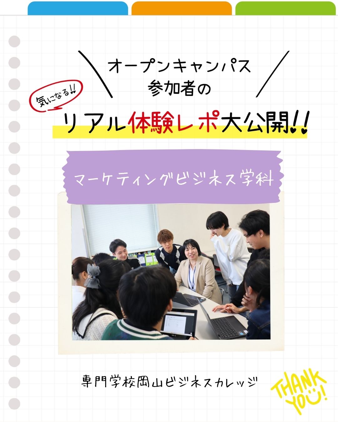 「自分の好きやアイデアをカタチにしたい!」「自分の好きを社会で役立つ仕事にしたい!」そんな人はぜひ、専門学校岡山ビジネスカレッジ マーケティングビジネス学科のオープンキャンパスに来てね!