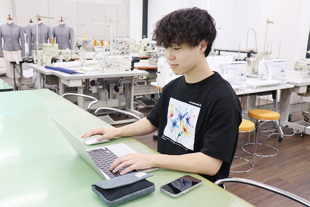 OBCのファッションクリエイター学科では、ファッションデジタルマーケティングの授業の中で、ITやAIなどのデジタルスキルの活用についても学んでいます。
