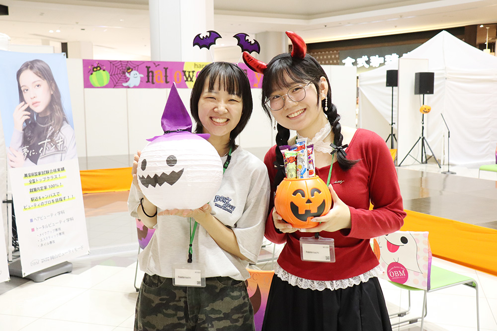 10月19日(日)にイオンモール岡山1階の未来スクエアにて、岡山ビジネスカレッジ(OBC)×姉妹校岡山ビューティモード(OBM)プレゼンツのハロウィンイベントを開催しました🎃
