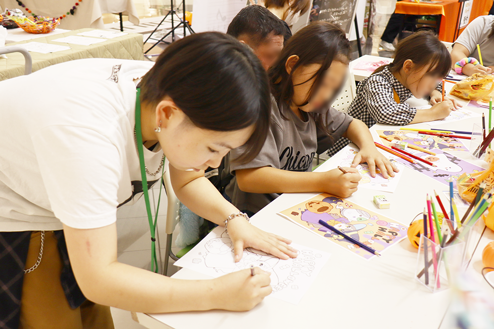 塗り絵はアニメイラスト学科の学生が書いてくれたイラストです!みんな集中して塗っていました★
