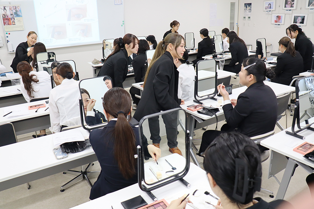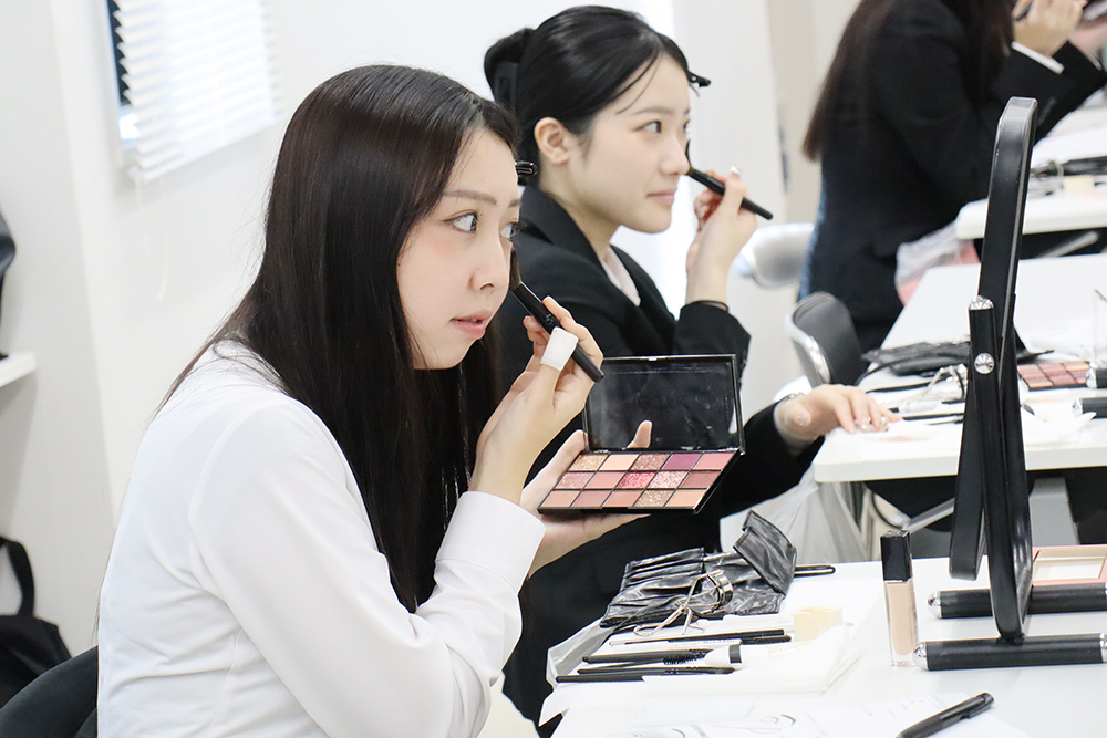メイク講座ではOBMの校舎へお邪魔して実習。