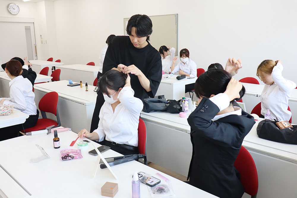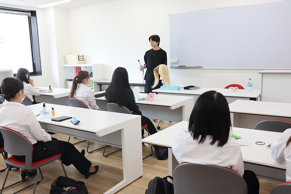 ヘア講座では、美容師でもあるOBMの高田先生が田町キャンパスに!
