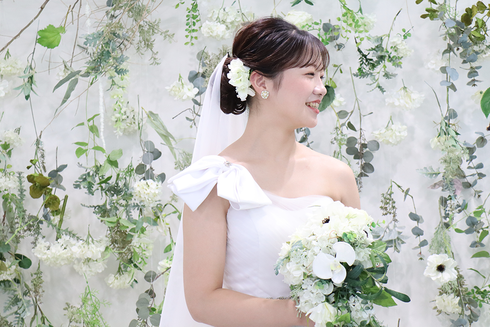 ヘアメイクのクイックチェンジの過程も見せていただき、同じウェディングドレスでも、ヘアメイクを変えるだけで全く印象が変わることにビックリ!