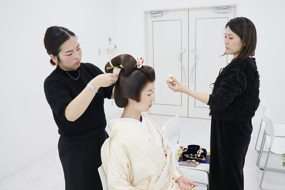 今回はスペシャル授業!ということで、2週続けて実際に現場で活躍されている先生が花嫁のお仕度を行う様子を間近で見学しました(*^^*)