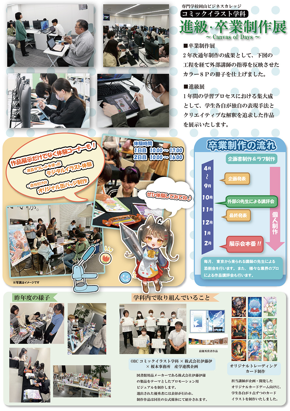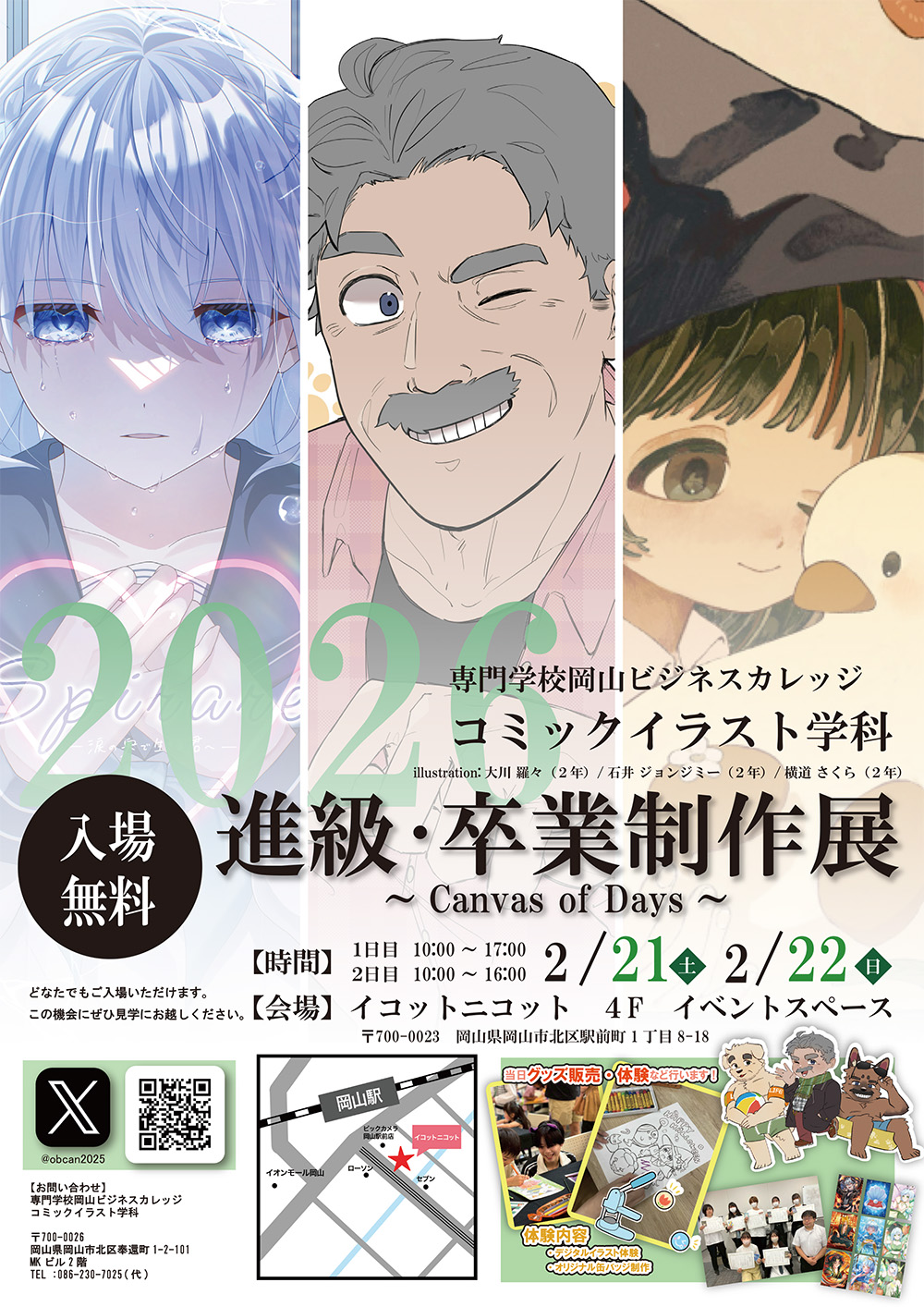 2/21(土)・2/22(日)の2日間、アニメイラスト学科(現:コミックイラスト学科)では学生が企画・運営する「進級・卒業制作展~Canvas of Days~」を開催します!
