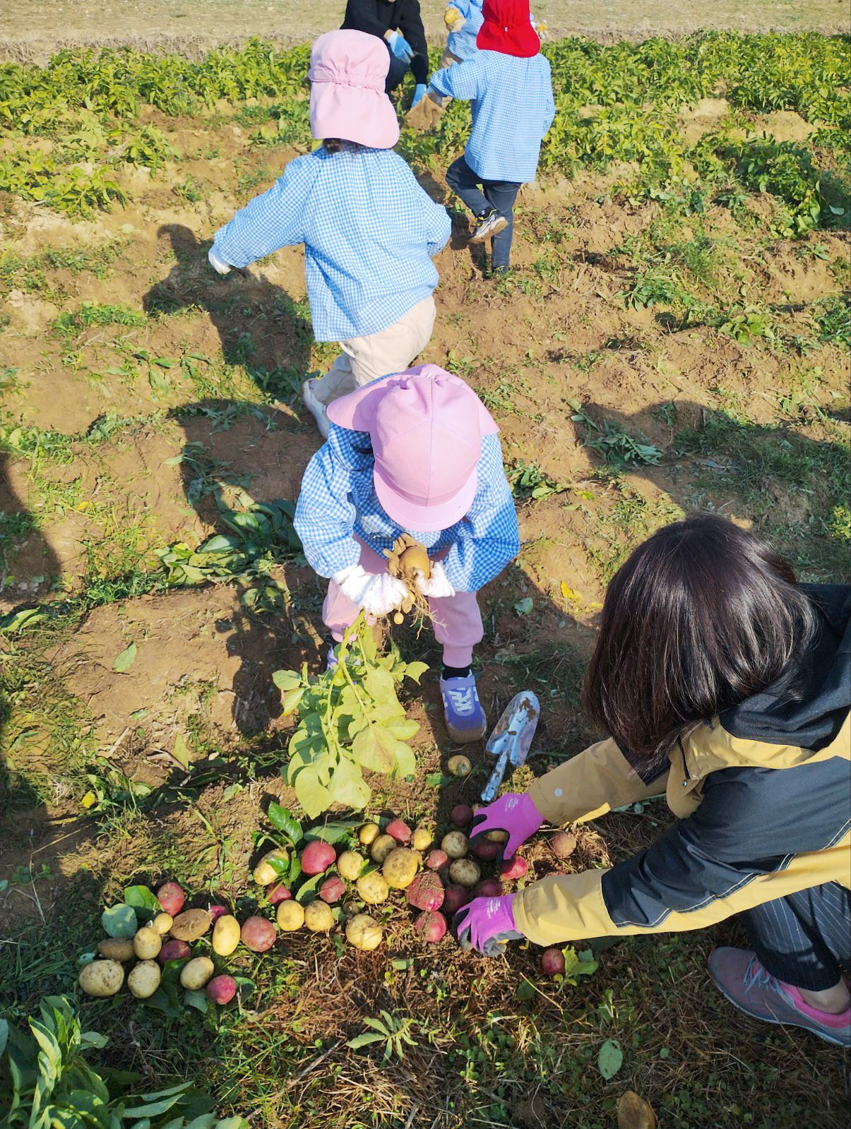 8月の草刈り・畝づくりから始まり、9月の種いも植え付け、11月の牛窓東幼稚園の園児との収穫体験、12月5日の瀬戸内市民向け収穫イベントなどを経て、収穫量は合計約130kg(体験で配布した分を除く)に到達。