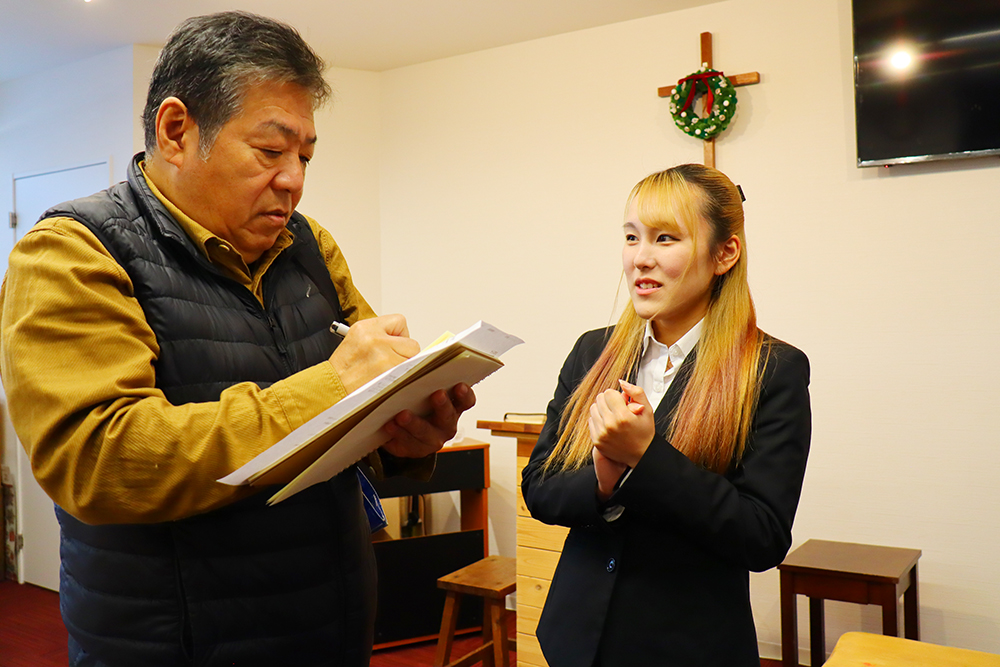 当日は、ビジネス・コミュニケーション学科2年の学生2名が教員引率のもと教会を訪問。