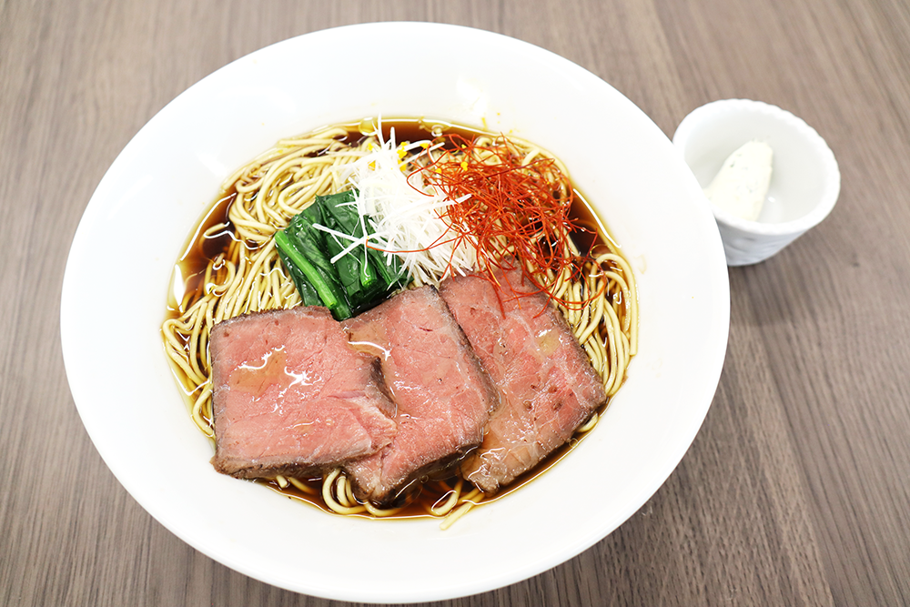手作りで旨みを引き出した自家製ラー油に、何度も試行錯誤を重ねて完成させた味噌だれを合わせ、国産牛のローストビーフをはじめとする彩り豊かな具材を盛り付けた、贅沢感あふれる一杯です。