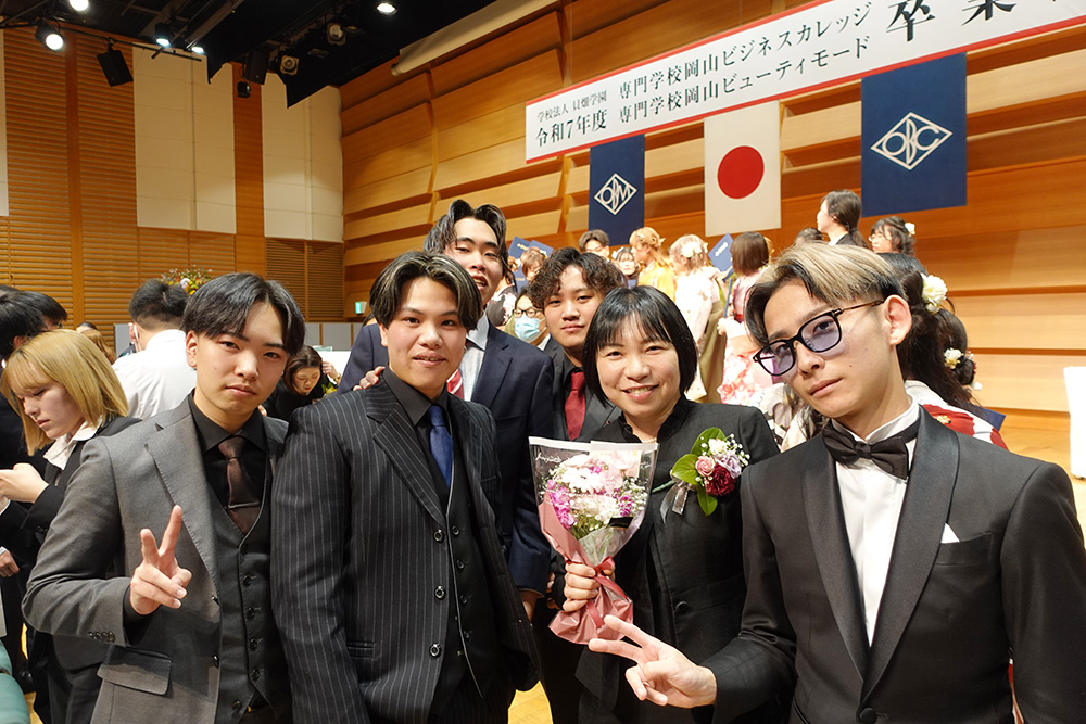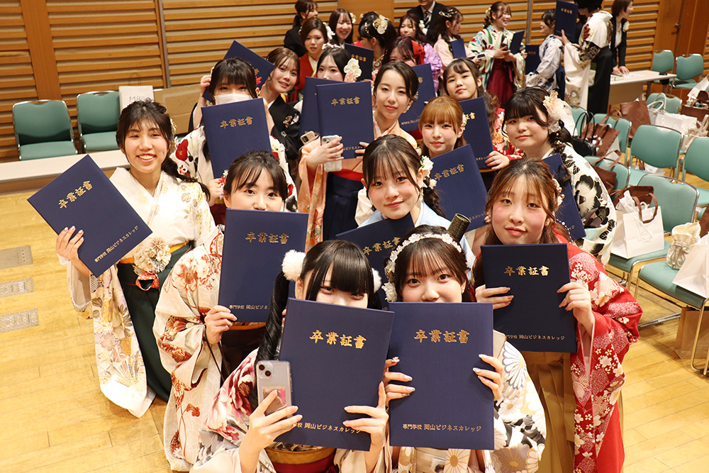 専門学校岡山ビジネスカレッジと専門学校岡山ビューティモードは両校合わせて学生数1000名以上と、専門学校としては岡山県下学生数No.1の総合学園ですが、令和7年度は515名の卒業生を社会へ送り出しました。