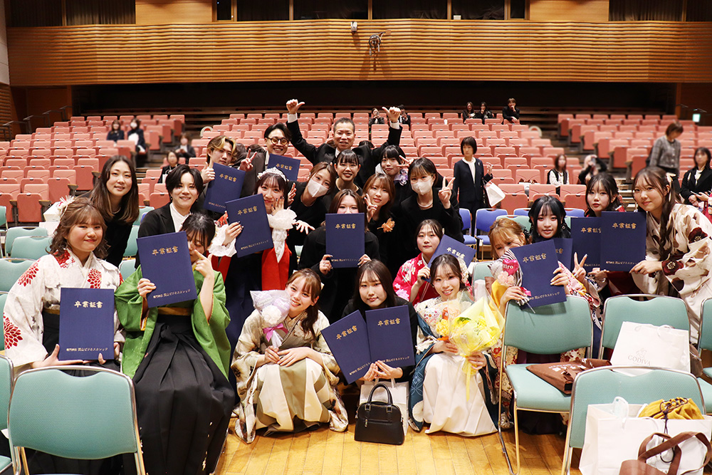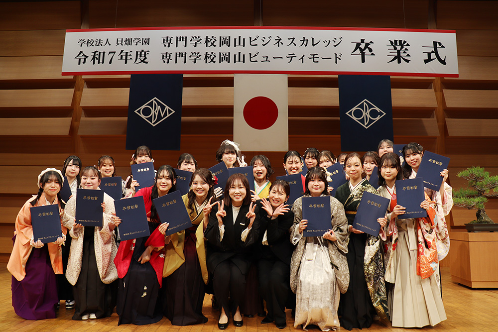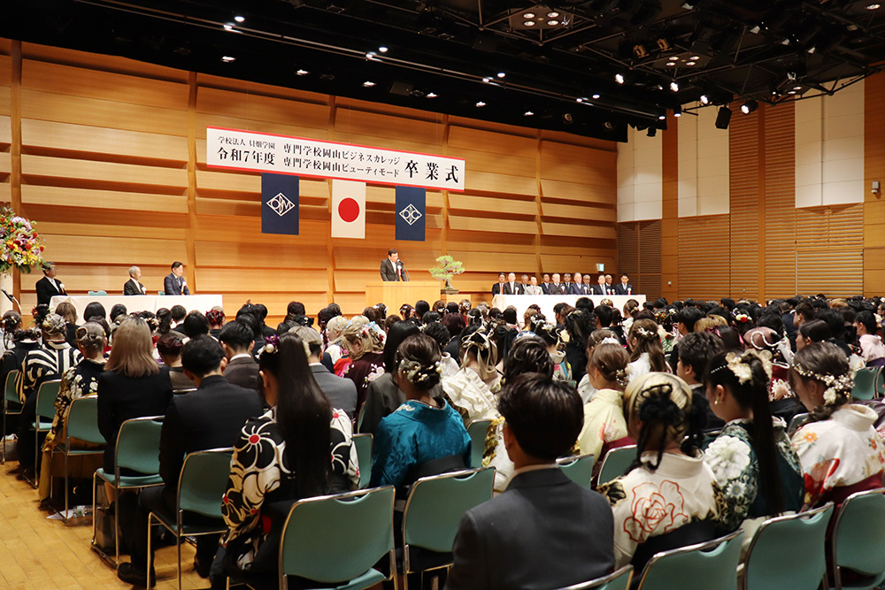 3月11日(水)、令和7年度 専門学校岡山ビジネスカレッジ・専門学校岡山ビューティモードの合同卒業式を岡山コンベンションセンターにて挙行しました。