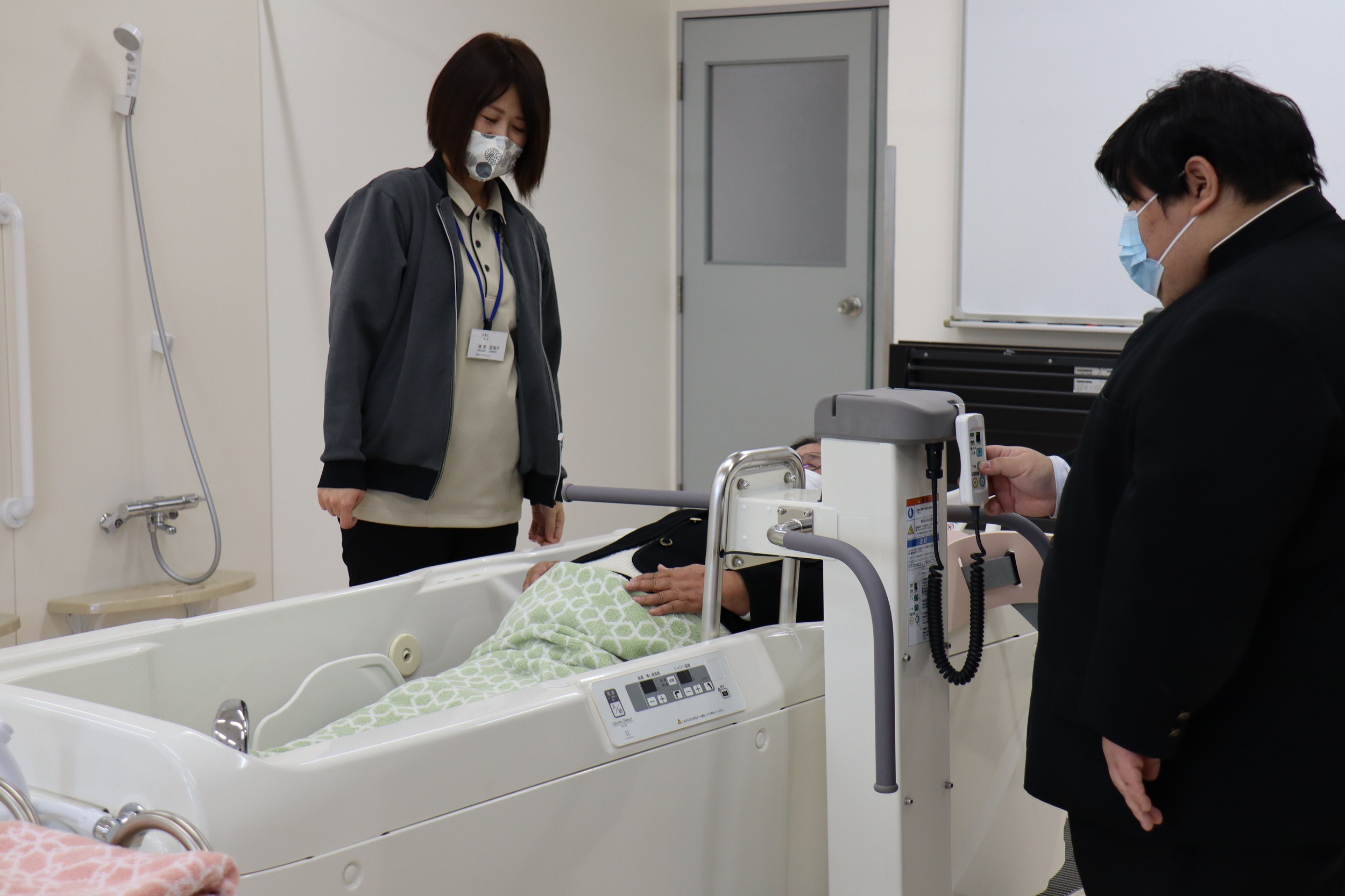 専門学校でしっかりと技術や知識を身につける大切さや、介護器具の進化で大きく変わっている介護現場について理解を深めていただく見学会になりました。