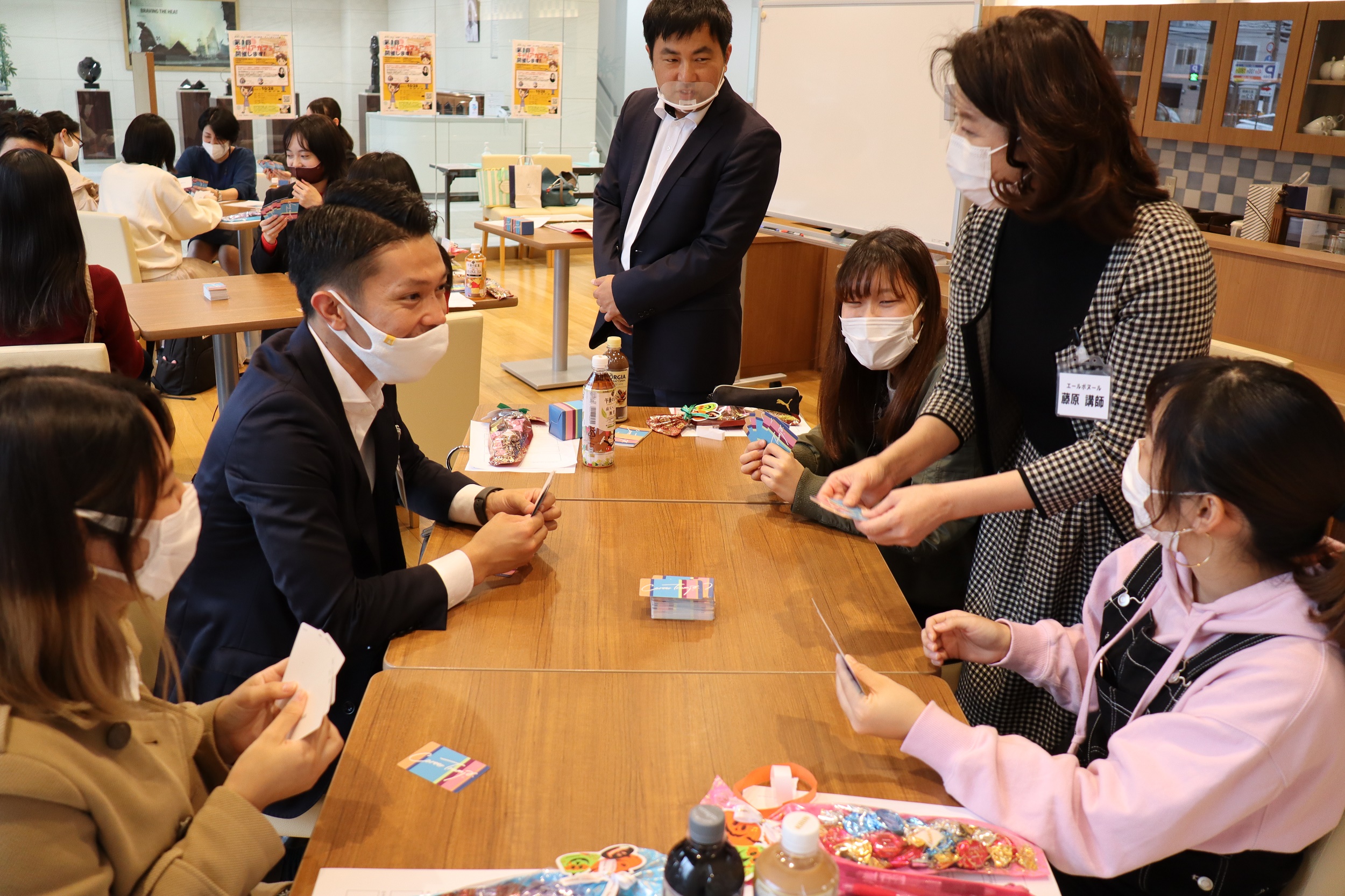 今回はゲスト講師の藤原奈緒美先生によるカードツールを使ったワークショップを開催し、学生に加えて現役採用担当者の企業の方も参加されました。