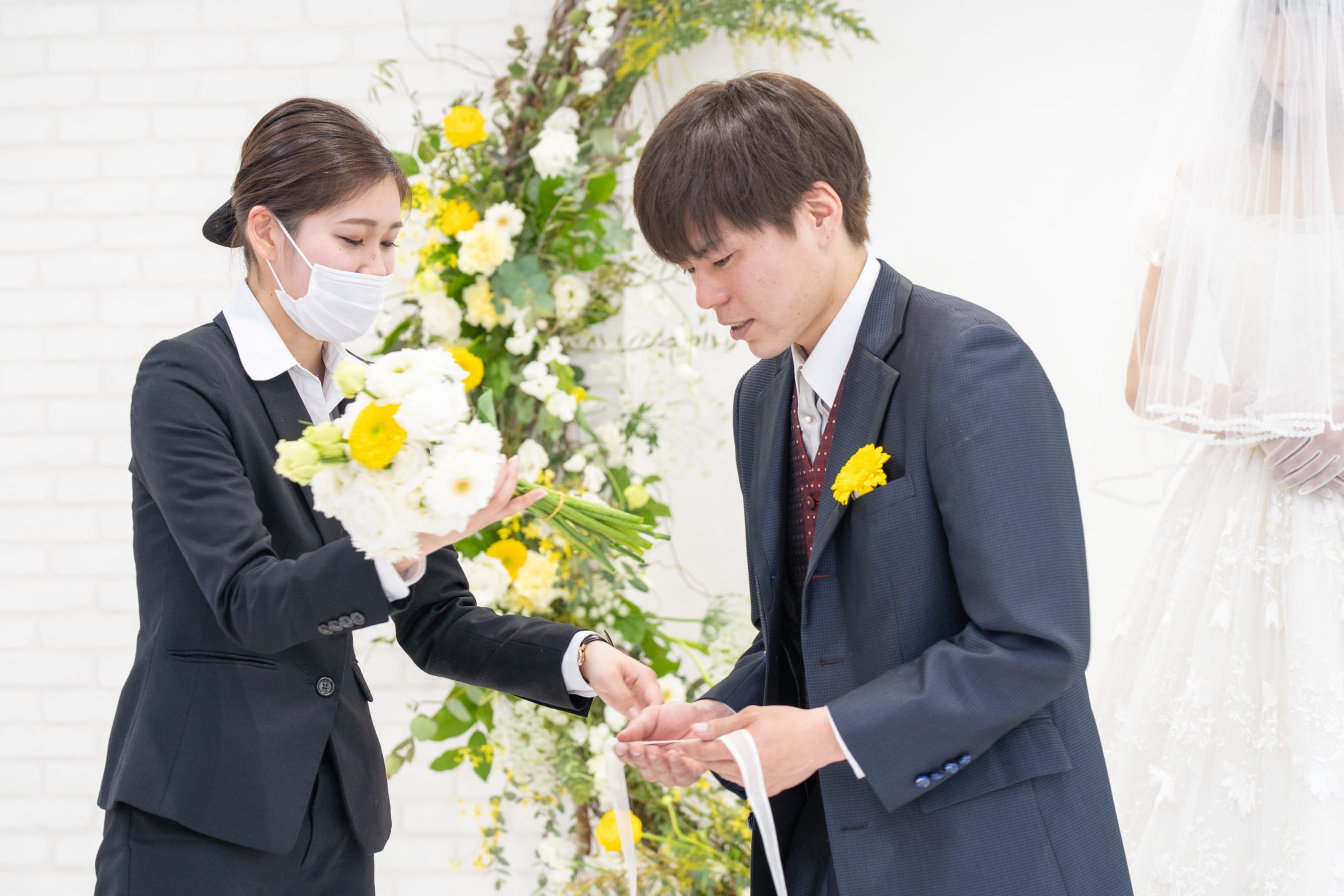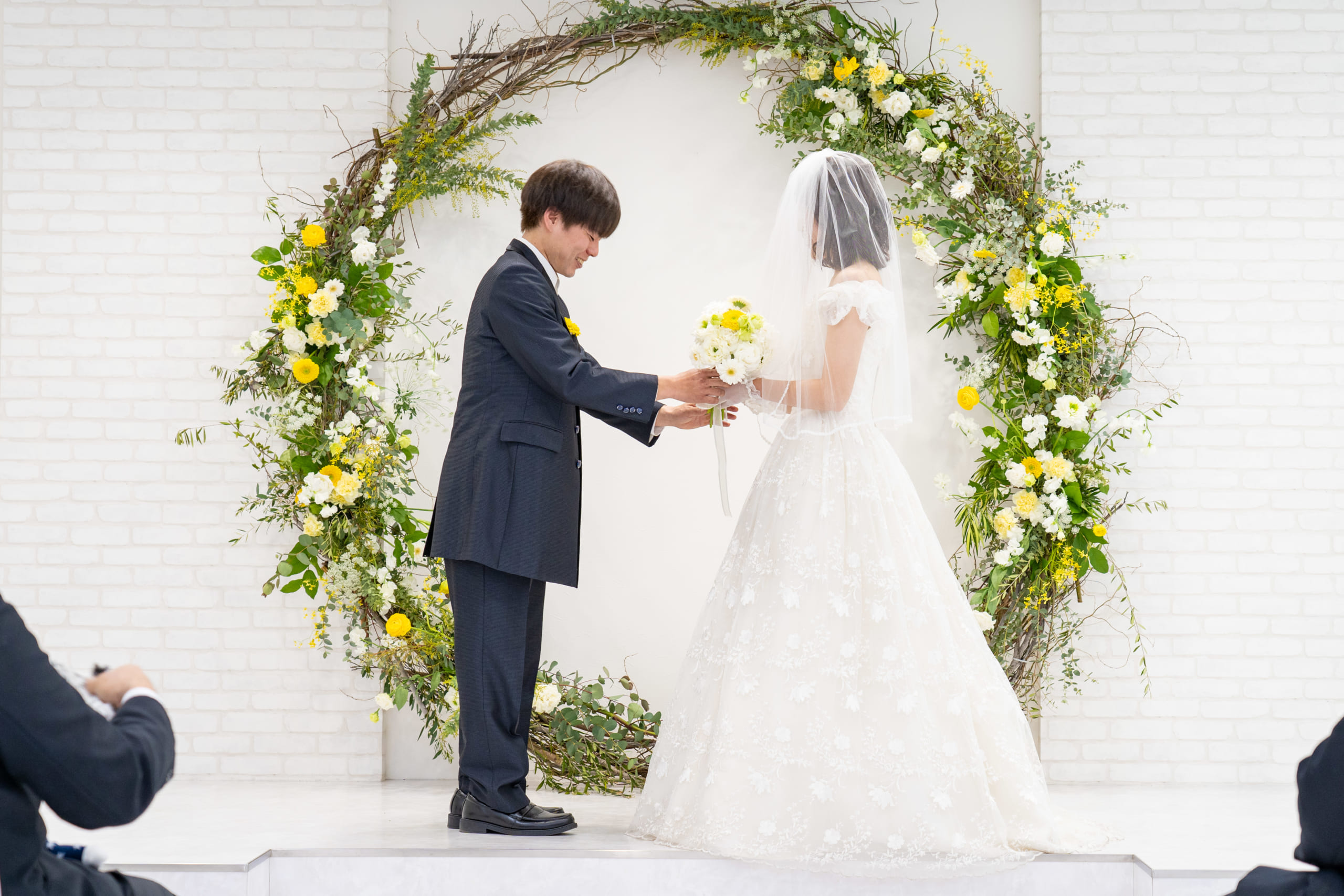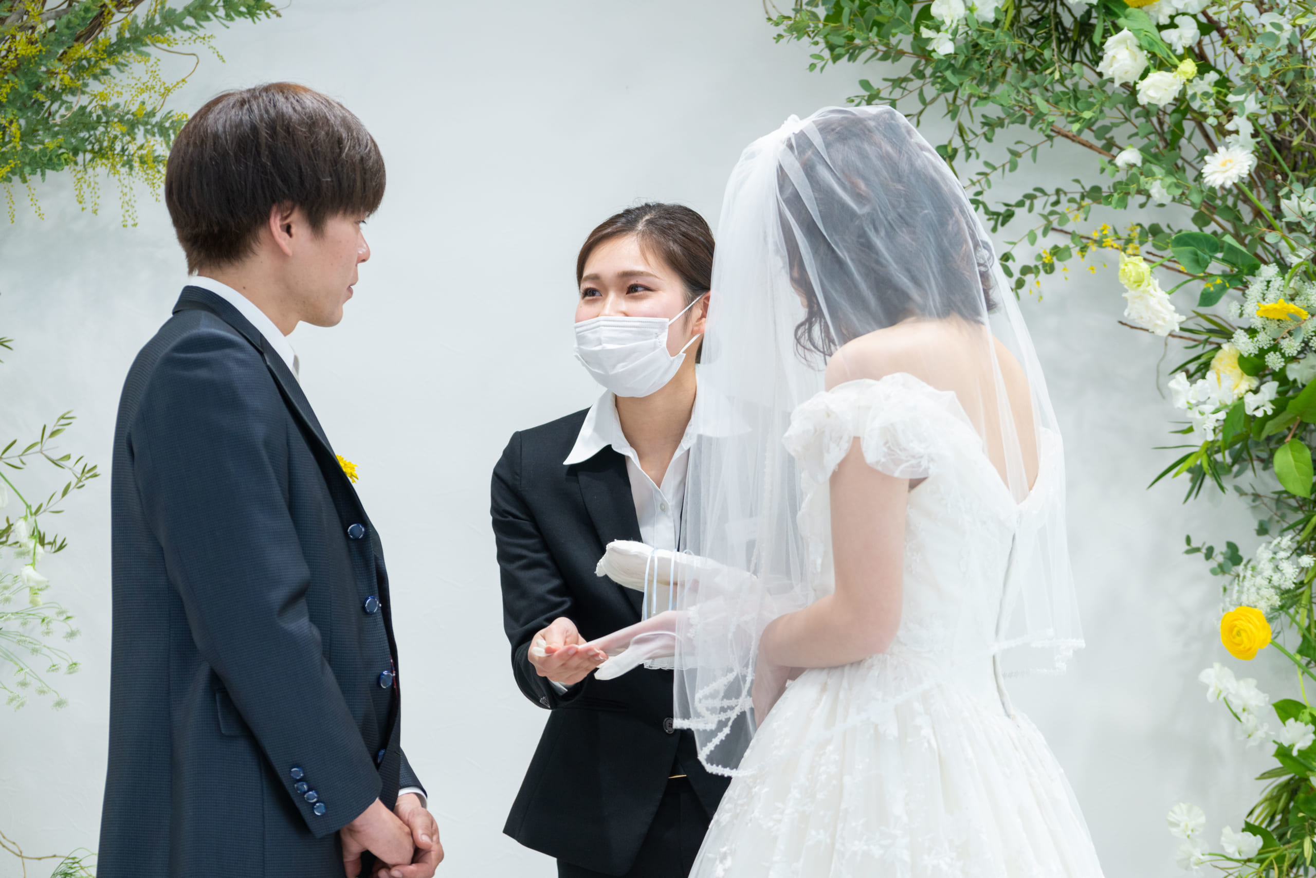 毎年たくさんのゲストを招待し、挙式と披露宴を盛大に行っているM.D.O.weddingですが、今回は三密を避けるため、新郎新婦様のご家族とご友人だけをお招きし、新型コロナウィルス感染予防対策を十分に行い挙式のみを実施しました。