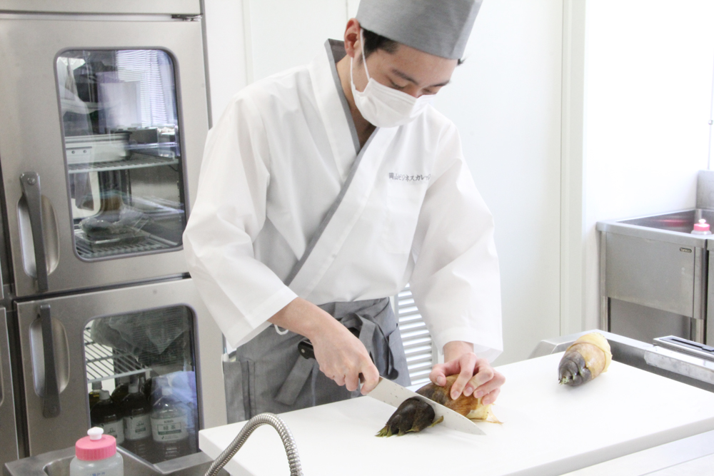 和食に特化している学科ということもあり、学生たちは筍を糠炊きから仕込む調理法を一から学びます!